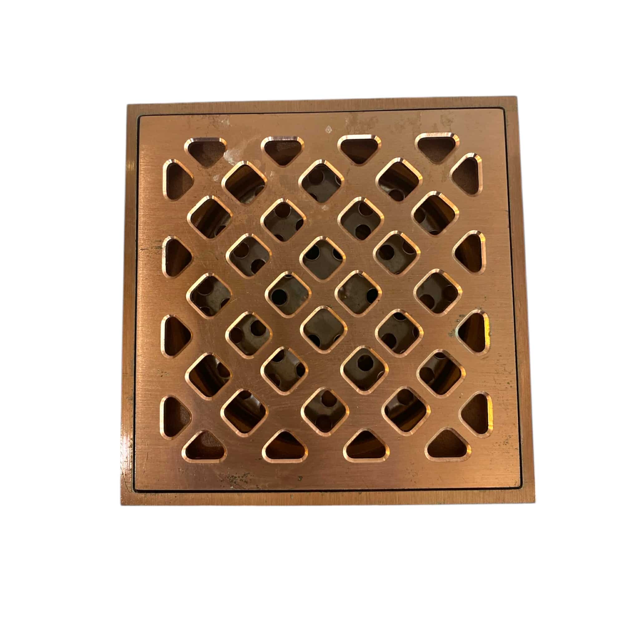 Bonde de douche carrée de luxe en laiton avec grille à motif diamant, construction robuste et résistante à la corrosion pour salles de bains modernes