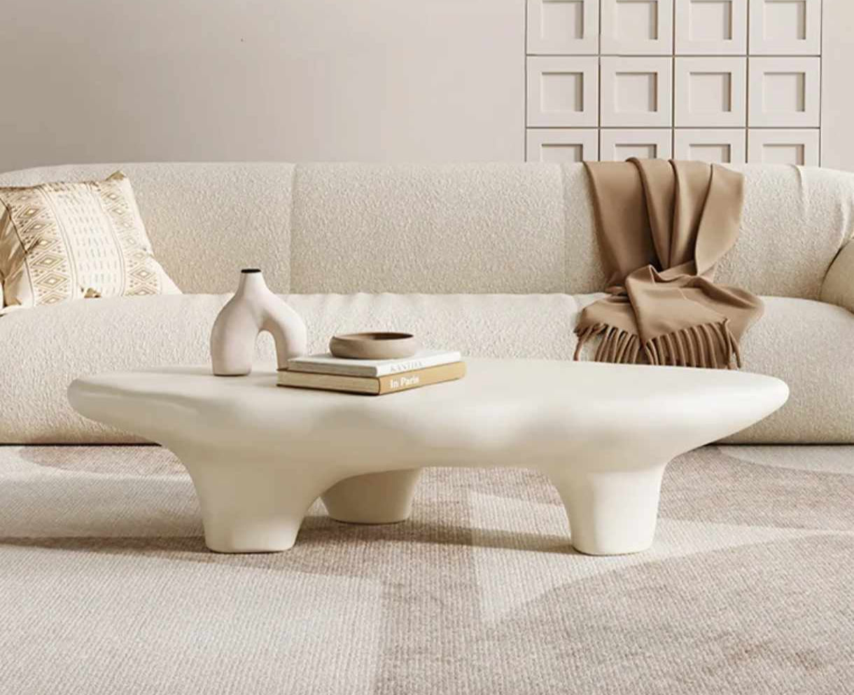 Table basse centrale minimaliste de luxe en fibre de verre blanche pour salon