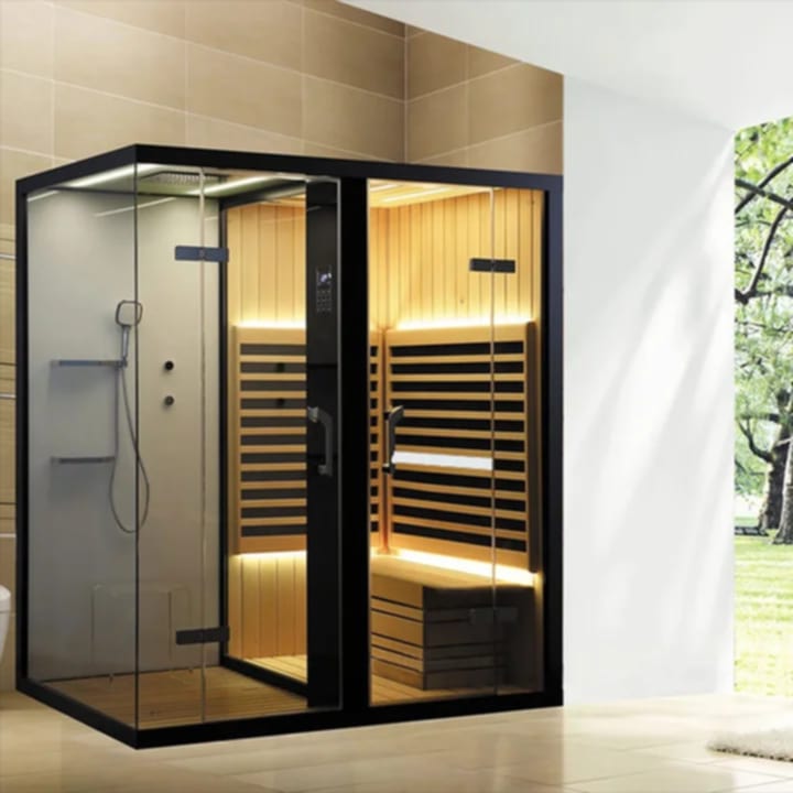 Sauna vapeur intérieur de luxe en bois pour 2 personnes avec douche (PRÉCOMMANDE)