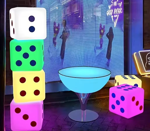 Chaise cube LED moderne et colorée avec table et télécommande sans fil étanche.