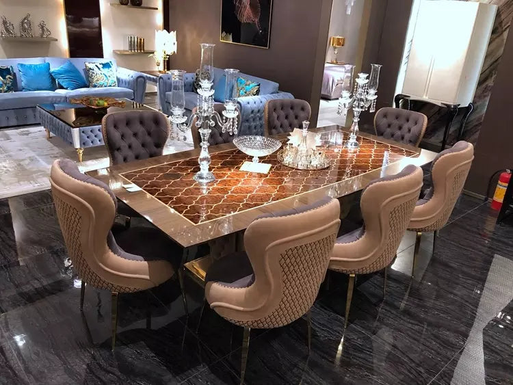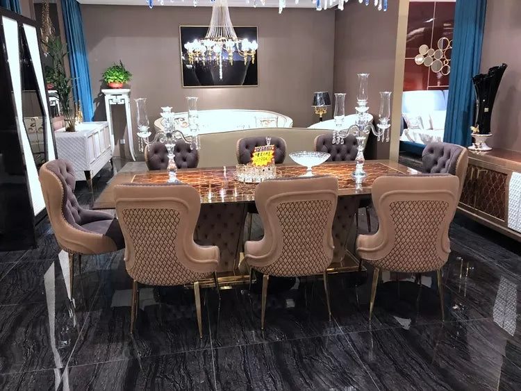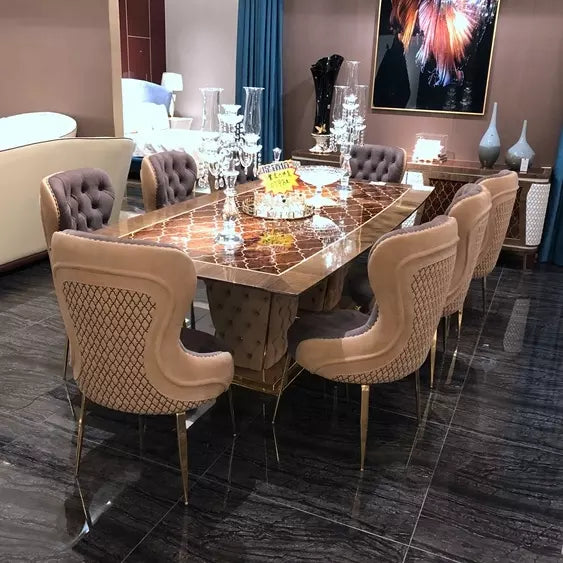 Table de salle à manger italienne moderne 6 places en tissu, mobilier de salon
