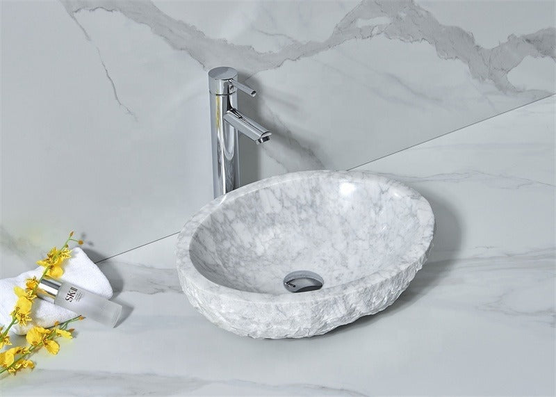 Oval Shape Bathroom White Marble Outdoor Counter Top Wash Basin
