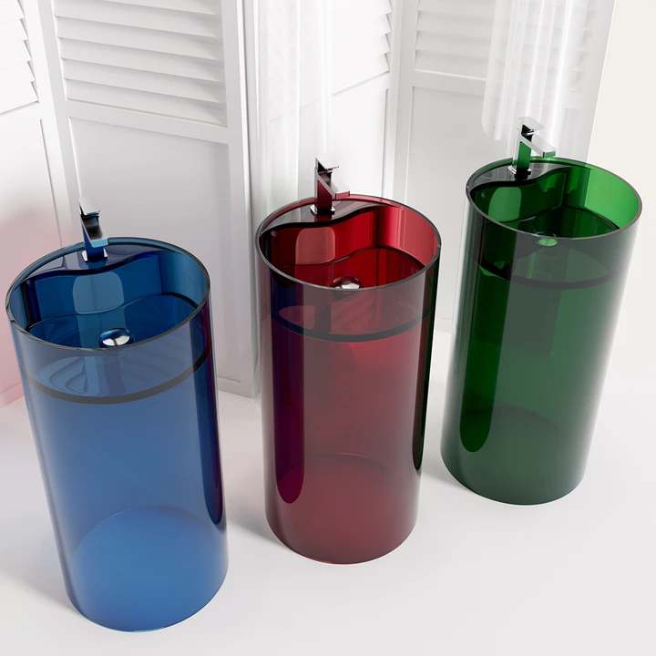 Lavabo sur pied en résine imitation pierre, couleur pure et transparente