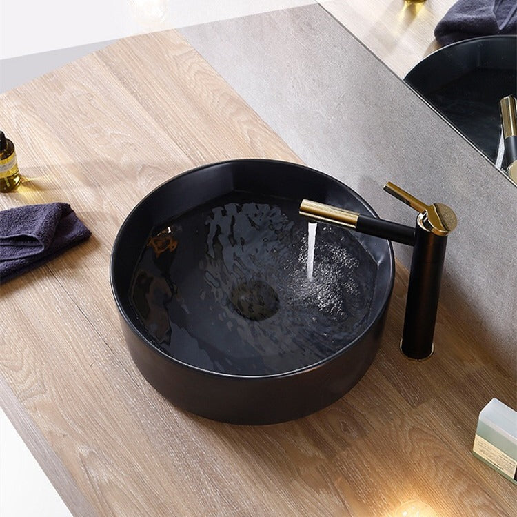 Diamond Round Matte Black Wash Basin Sink for Bathroom Tabletop
