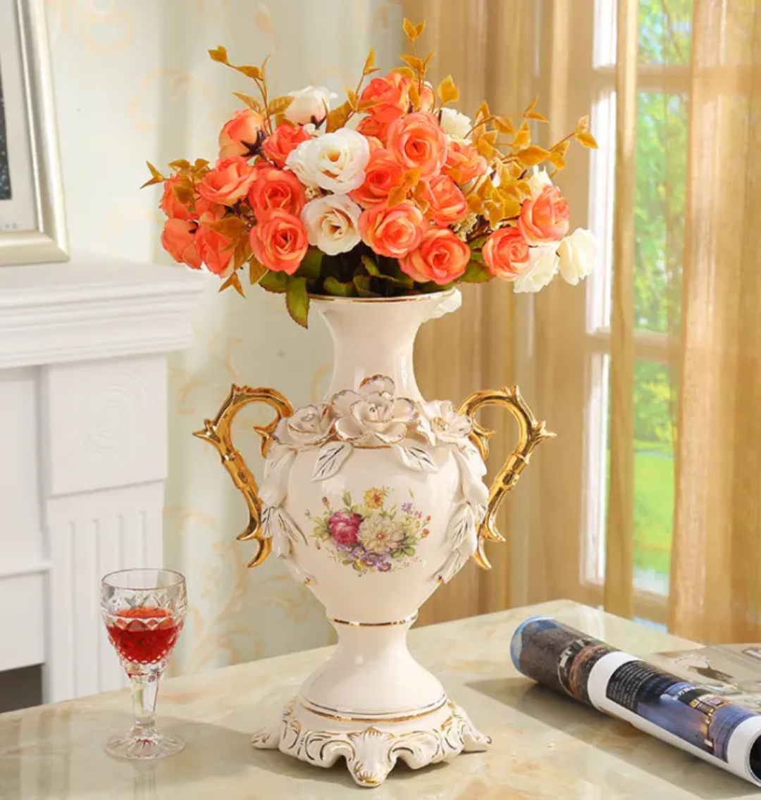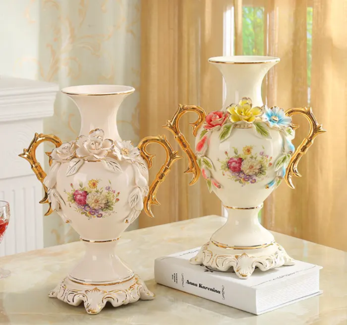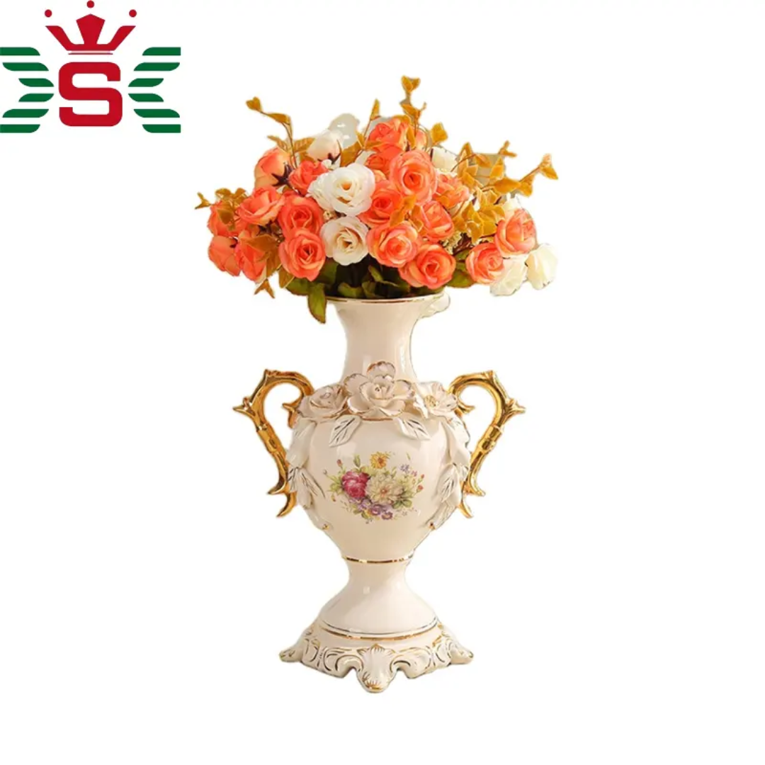 Sovereign Garden Masterpiece Vase with Vibrant Floral Motifs and Sculptures