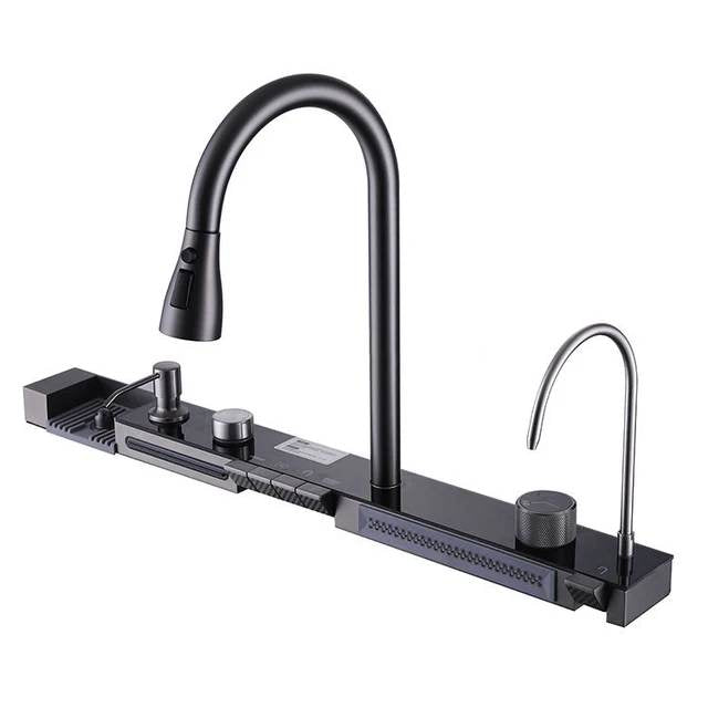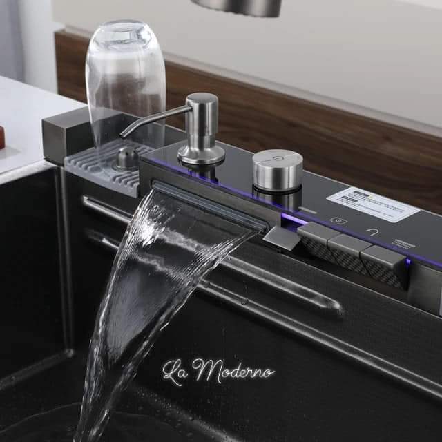 Évier de cuisine haut de gamme en acier inoxydable 304 Nano anti-rayures, noir, avec lave-tasses automatique et plateau en verre trempé (80 x 45 cm).