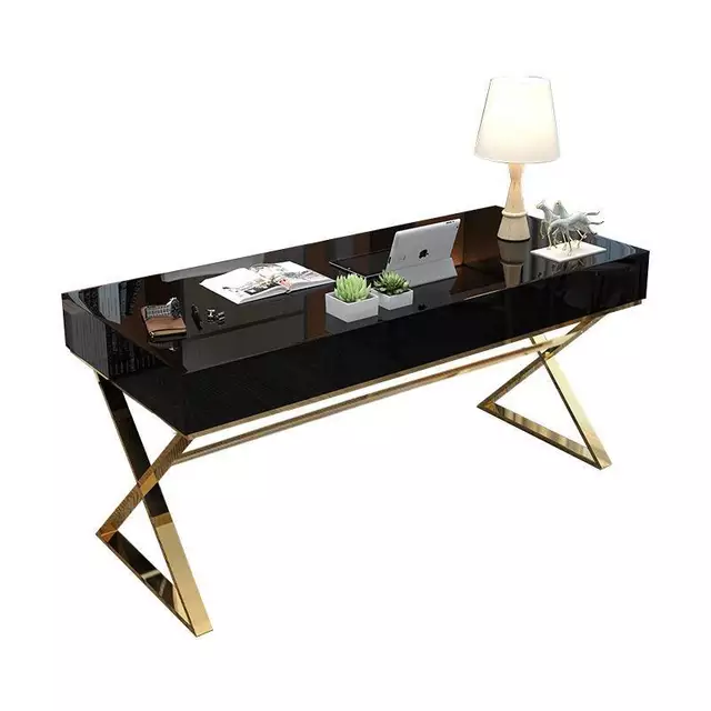 Table de bureau en acier inoxydable blanc doré, table de direction, table de bureau électroplaquée