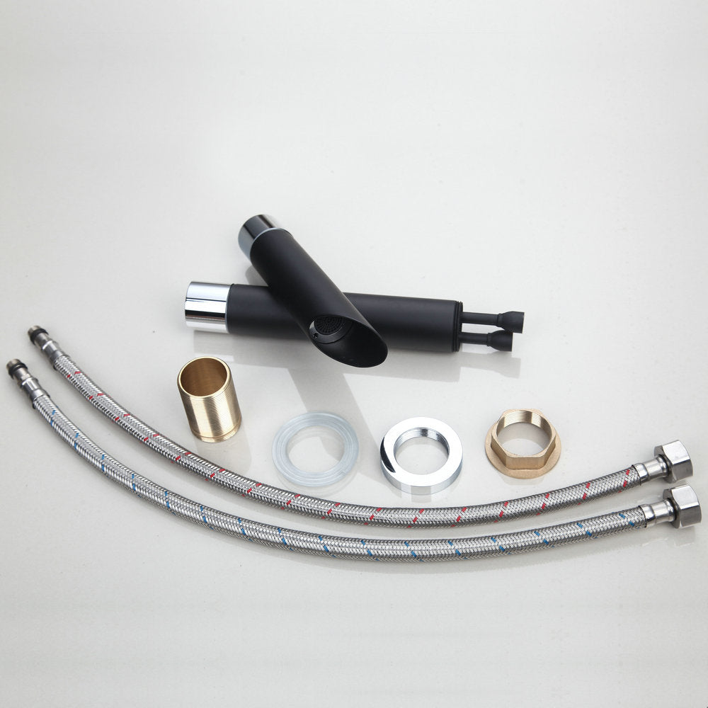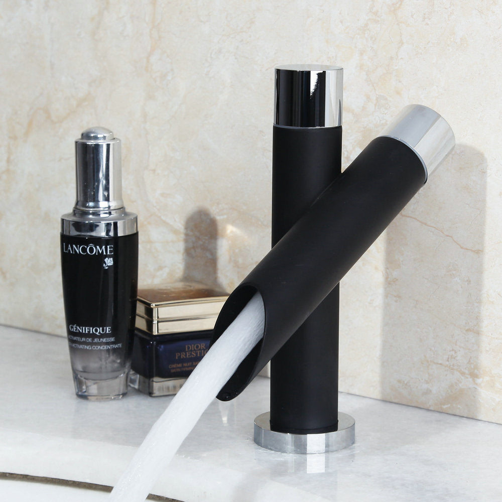 Robinet de lavabo noir minimaliste et innovant de style nordique, avec eau chaude et froide.