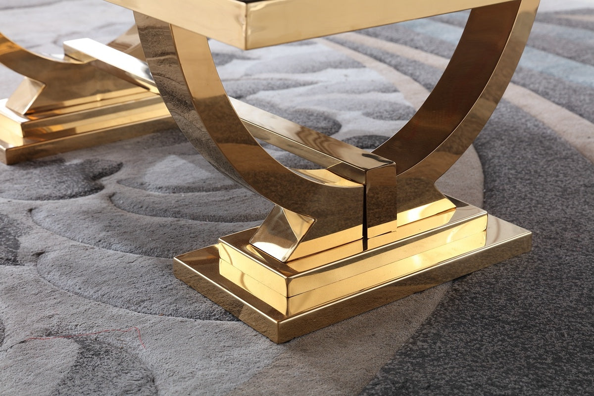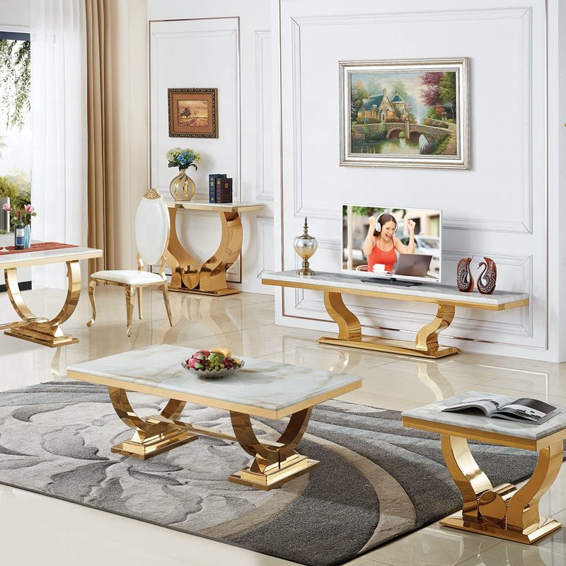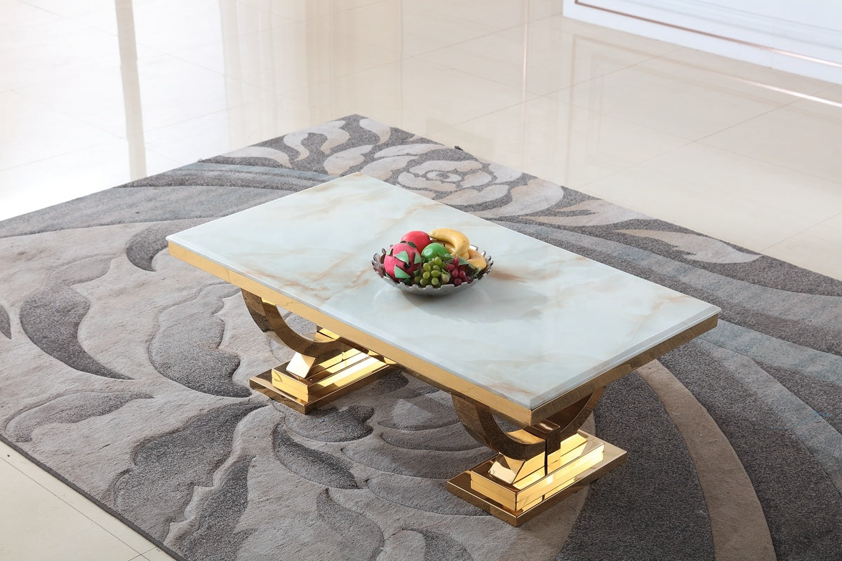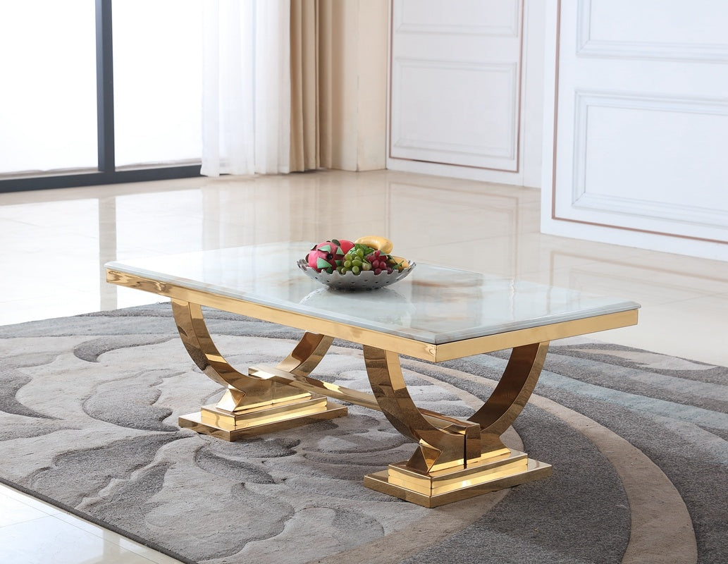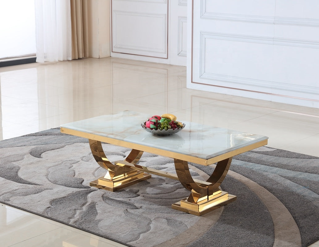 Visionnaire Home Table basse contemporaine de luxe en marbre, acier inoxydable doré et verre