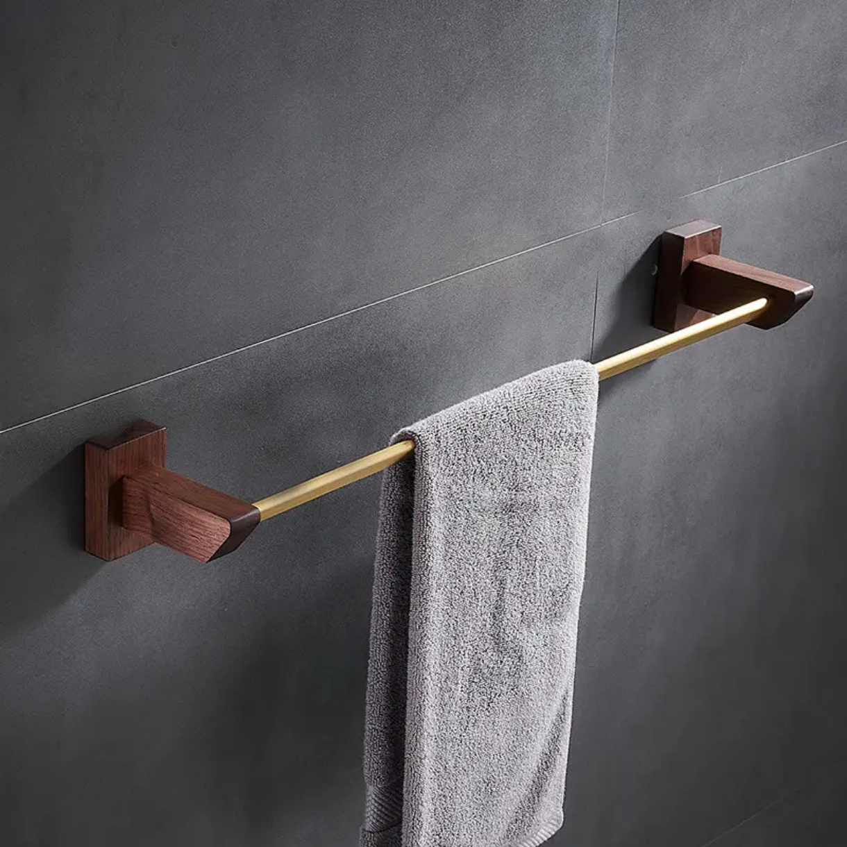 Ensembles d'accessoires de salle de bain en bois de noyer massif et aluminium doré mat