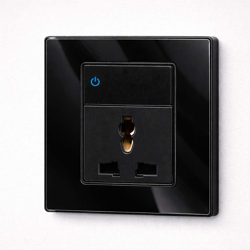 1 Gang Wall Socket Black Edition Universal Socket Acrylic Black Single Socket with Utility Box