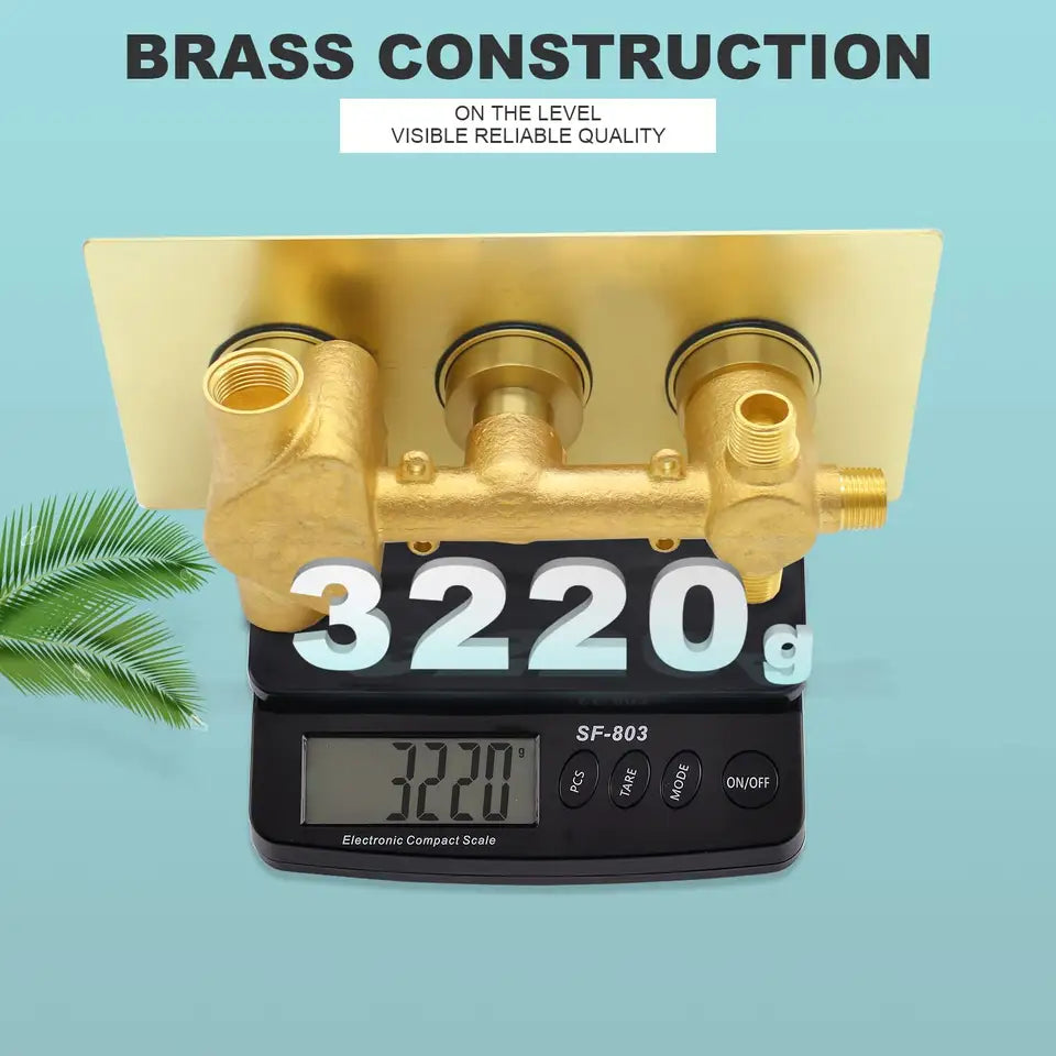 16 Inches Brushed Gold Bathroom Shower System LED Rainfall Shower Combo Set Wall Mounted