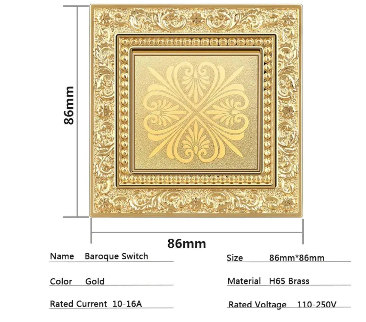 Size: 86x86mm Materials: H65 Brass Base Material: Flame Retardant Intermediate / 3-way (multi-location)→ Used when controlling from 3 or more... Read more