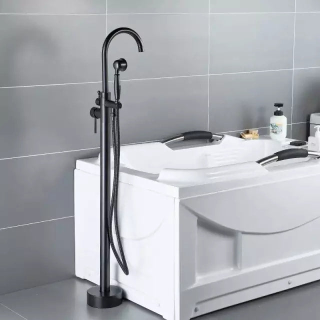 Bathroom Brushed black Floor Mount Free Standing Bathtub Faucet Shower System Set