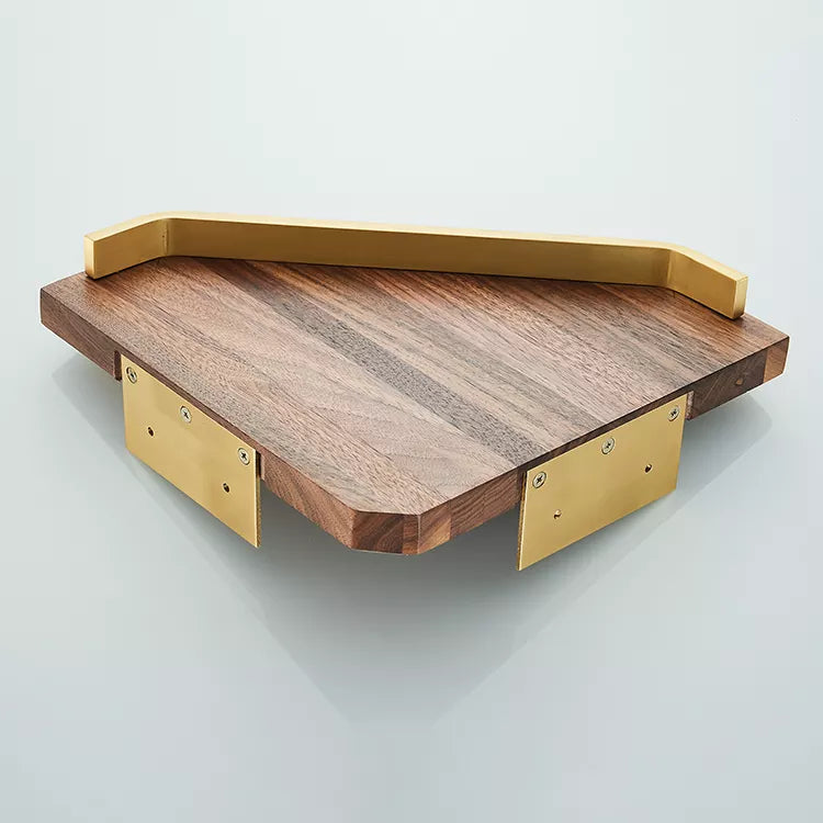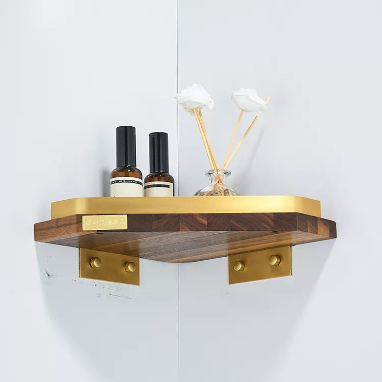 Brushed Gold Walnut Wooden Corner Basket Shower Caddy Shelf Wall Bathroom Shower Corner Caddy Shelf