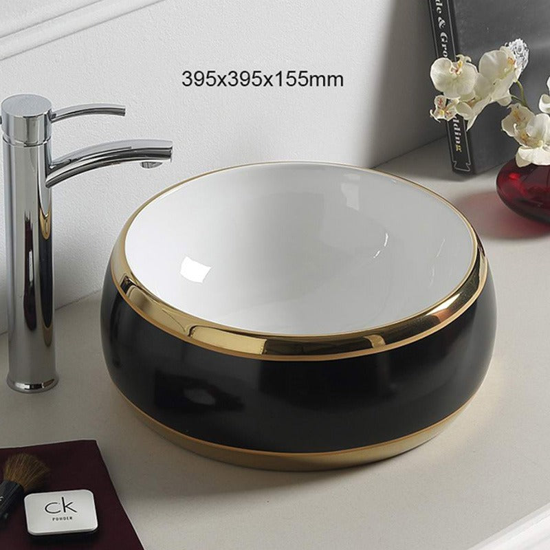 Porcelain Black and Gold Wash Basin Tabletop Round