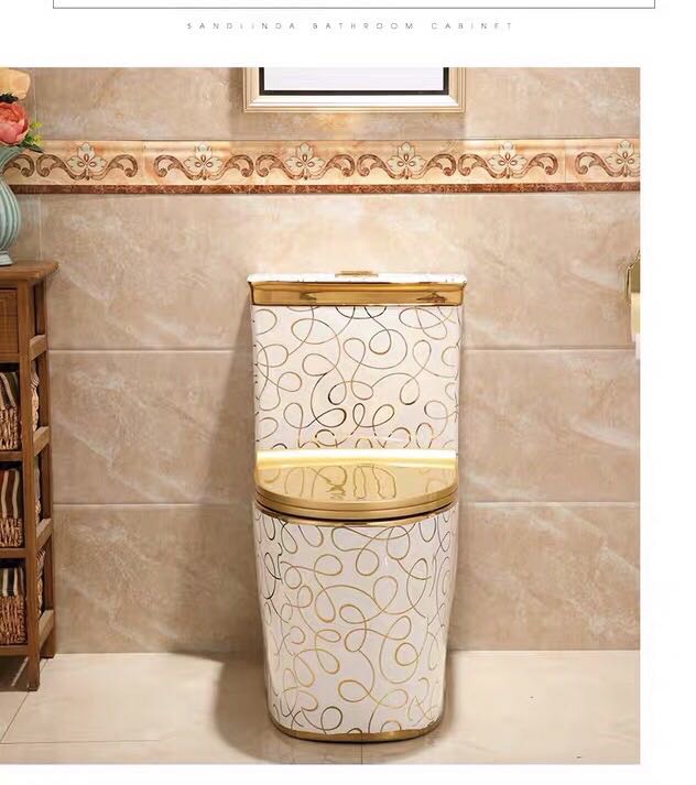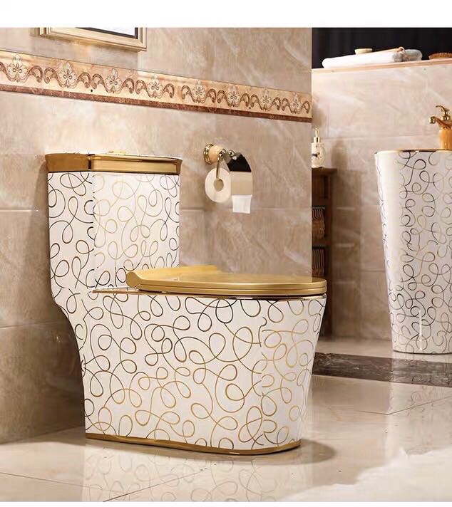 Made from high-quality porcelain ceramic, the toilet bowl offers durability, smooth glazing, and resistance to stains and scratches. The gold electroplated surface enhances its premium appearance, making it a perfect centerpiece for luxury homes, villas, hotels, and high-end interior design projects.