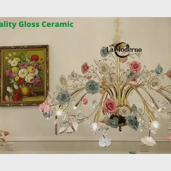 Floral Ceramic Iron Chandelier Pendant Light Crystal