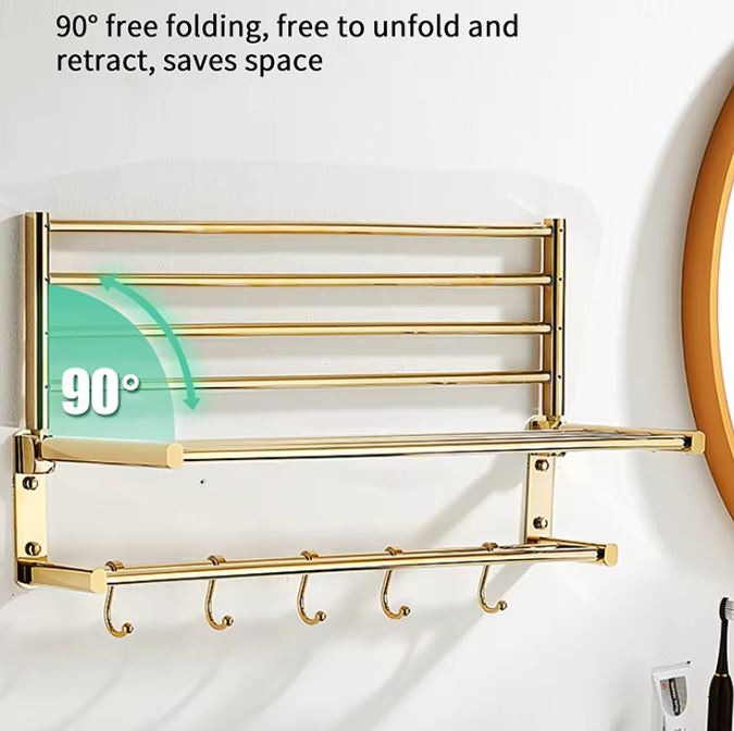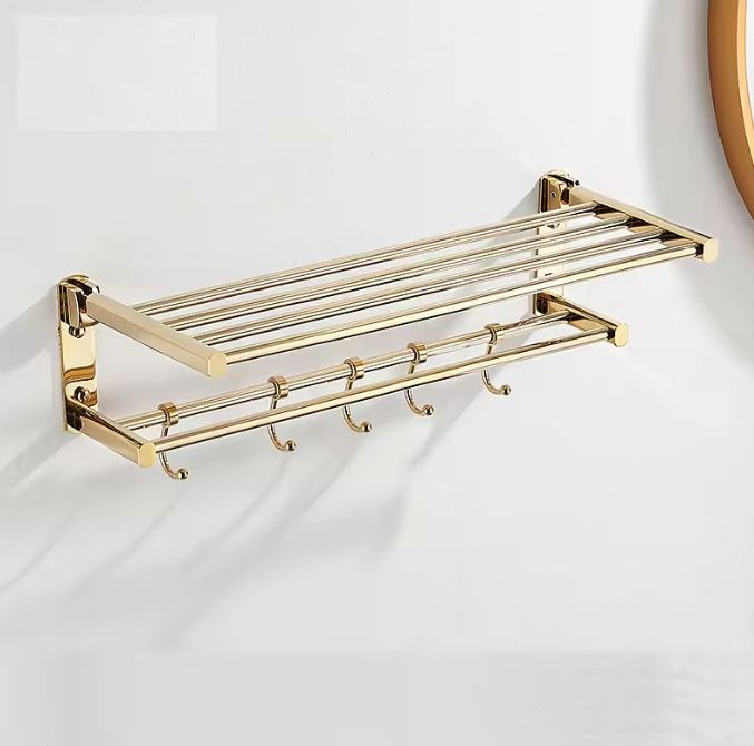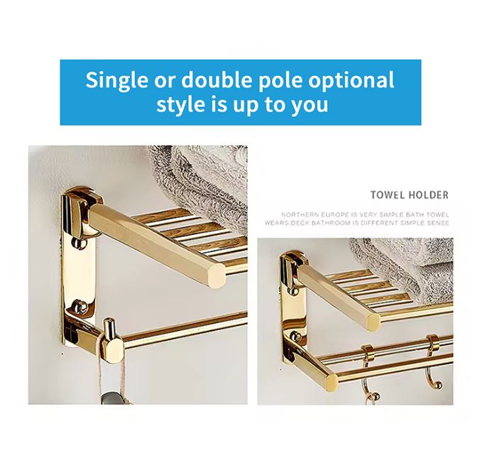 Gold Double-layer Towel Rack with Hooks accessories for Bathroom and Toilet Electroplated Stainless Steel 304 Gold Bathroom Accessories Set Highend