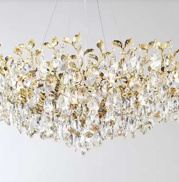 Luxury Crystal Leaf Chandelier – Modern Simple Elegant Hanging Ceiling Light 50cm