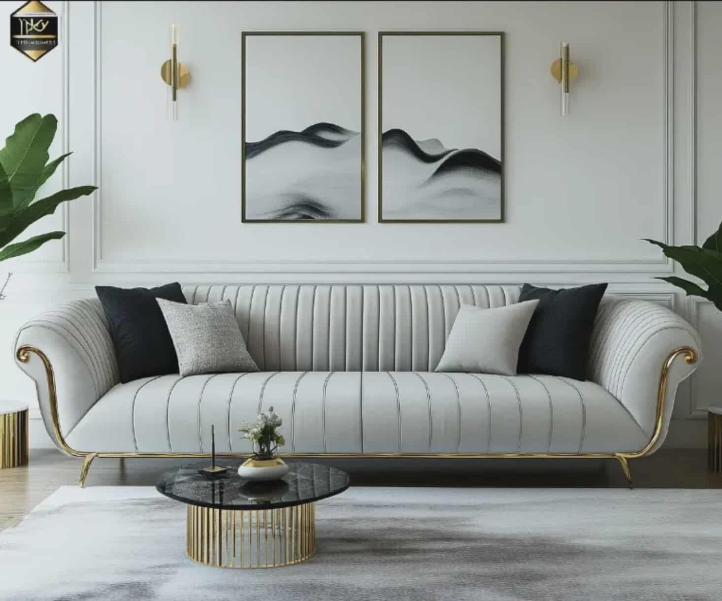 Luxury Modern Velvet Sofa with Gold Accents – 3-Seater