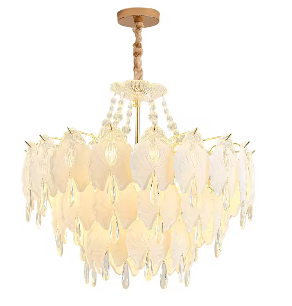 Enhance your interiors with this luxury crystal chandelier, crafted from iron, glass, and crystal for lasting elegance. Featuring layered leaf-shaped... Read more