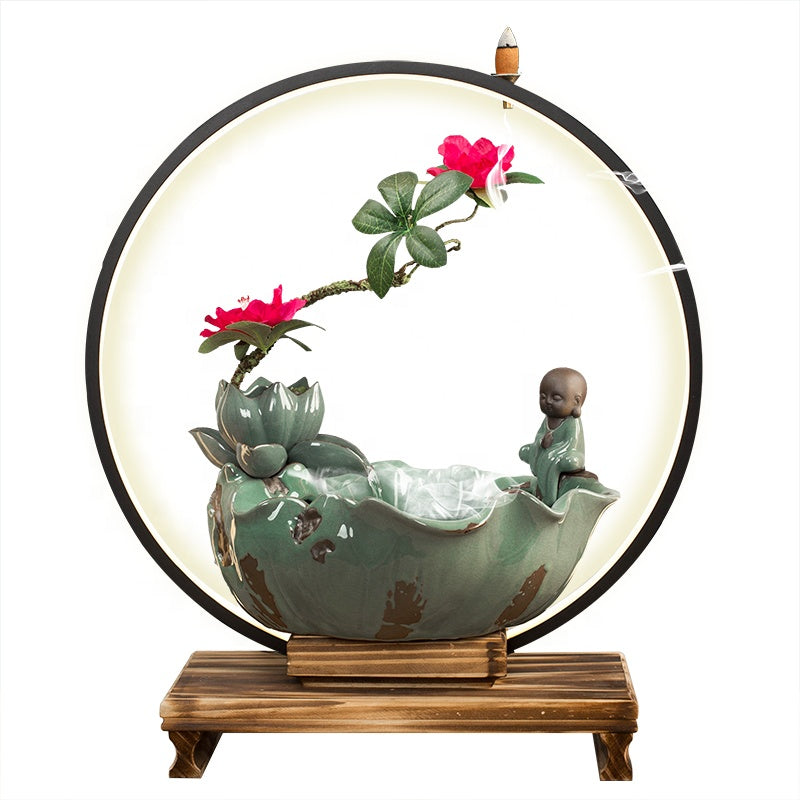 New Classical/Post-modern Style Living Room Lotus Leaf Flowing Water Ring Light Lamp For Decorative Tabletop Fountain