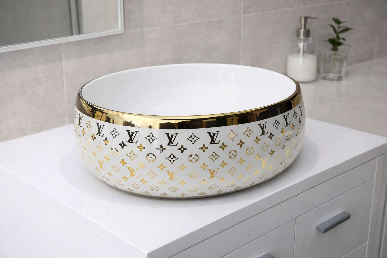 Pattern Basin Sink Gold White Electroplated Tabletop High Grade Porcelain Sink