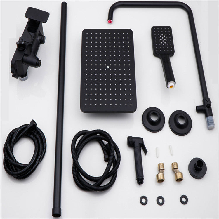 Rainfall Shower Fashion Design Style 4-function Black Exposed Rain Shower Set with Handheld Shower