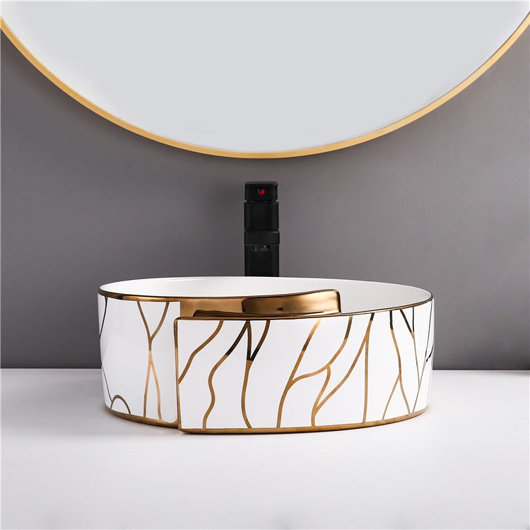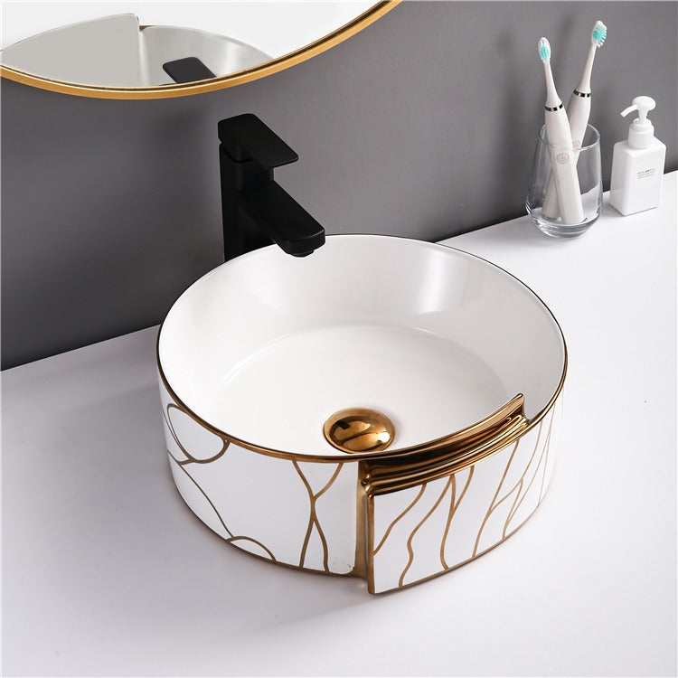 Round Electroplating Wash Basin Gold and White