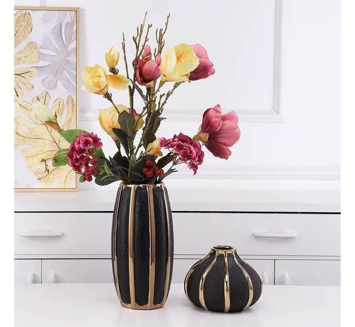 Simple Nordic style ceramic vase modern electroplating ornaments creative light luxury handicraft living room vase