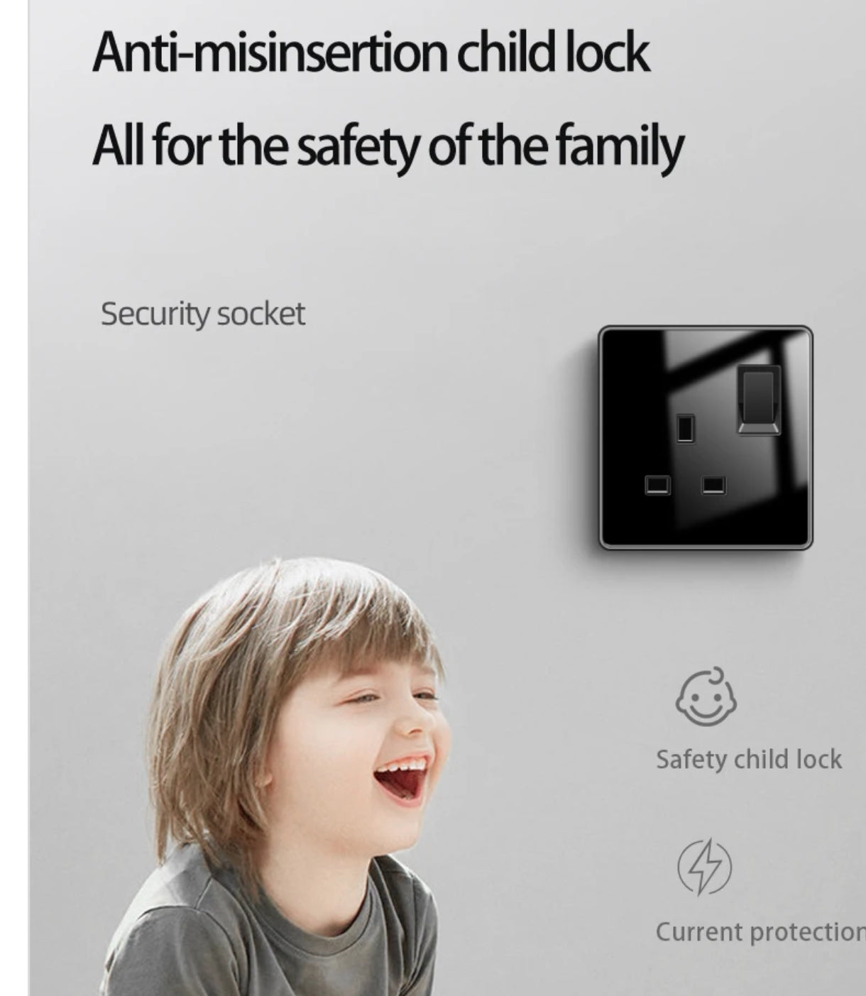 Socket Standard Universal Tempered Glass with Utility Box Electrical Wall Socket Double with 2Pin USB Fast Charging
