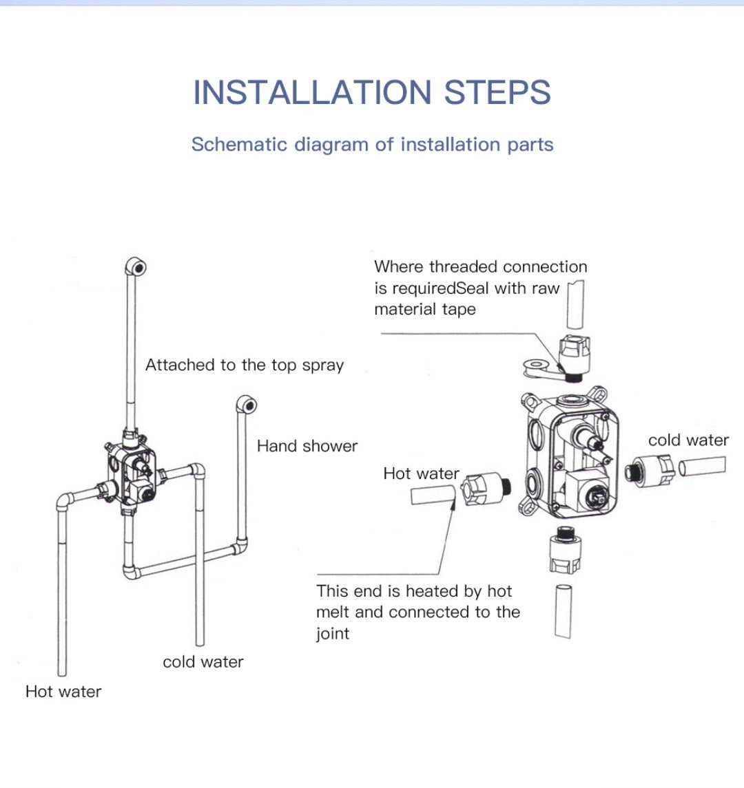 304 Stainless Steel Wall Shower Set Hot and Cold Brushed Silver