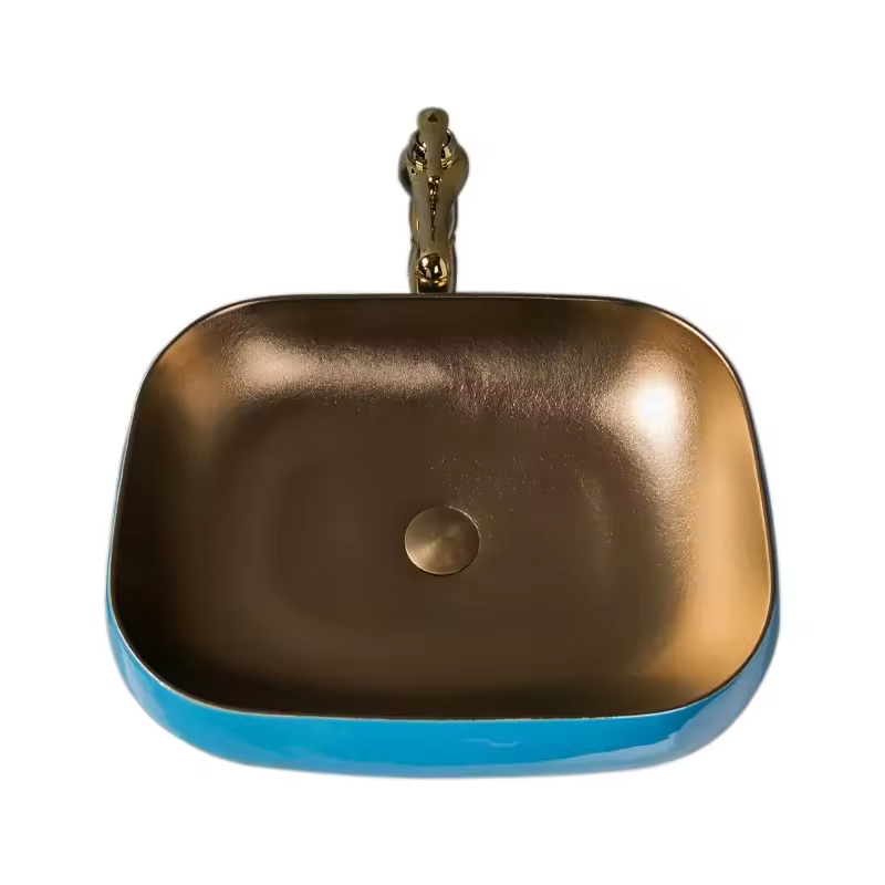 Blue and Gold Porcelain Countertop Bathroom Art Hand Wash