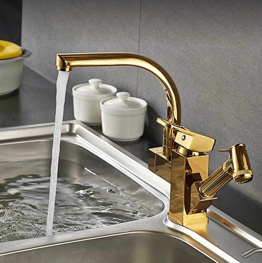 Classic Single Hole Water Tap Pull Down Kitchen Golden Faucet with Bidet Spray Gun