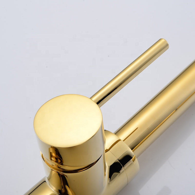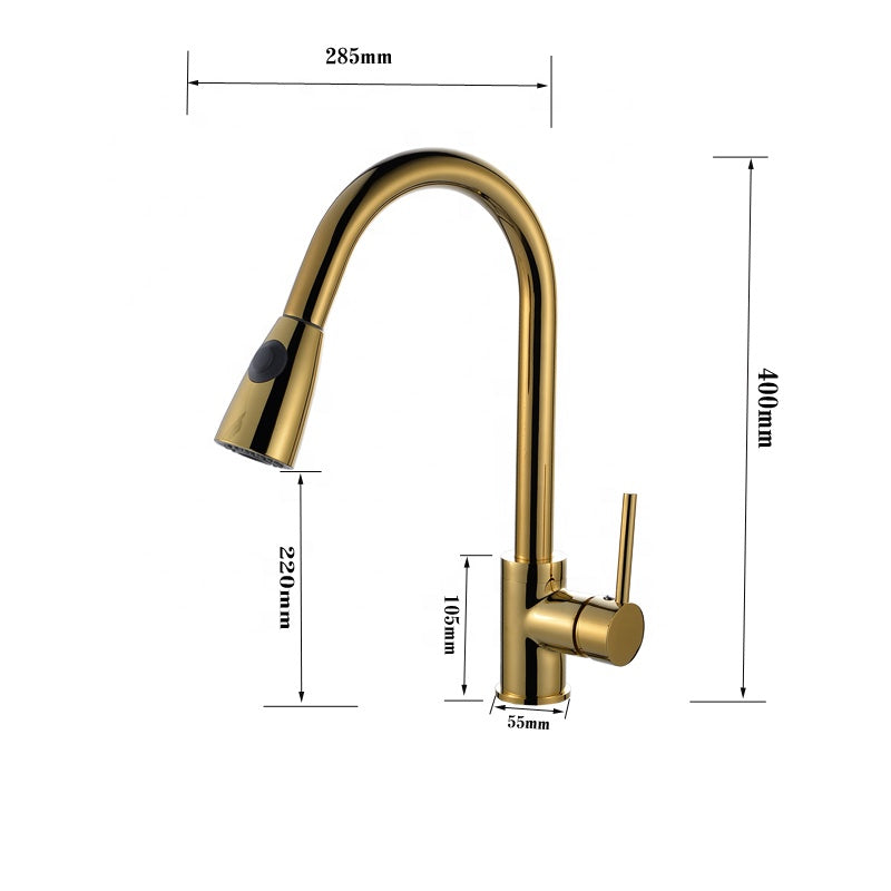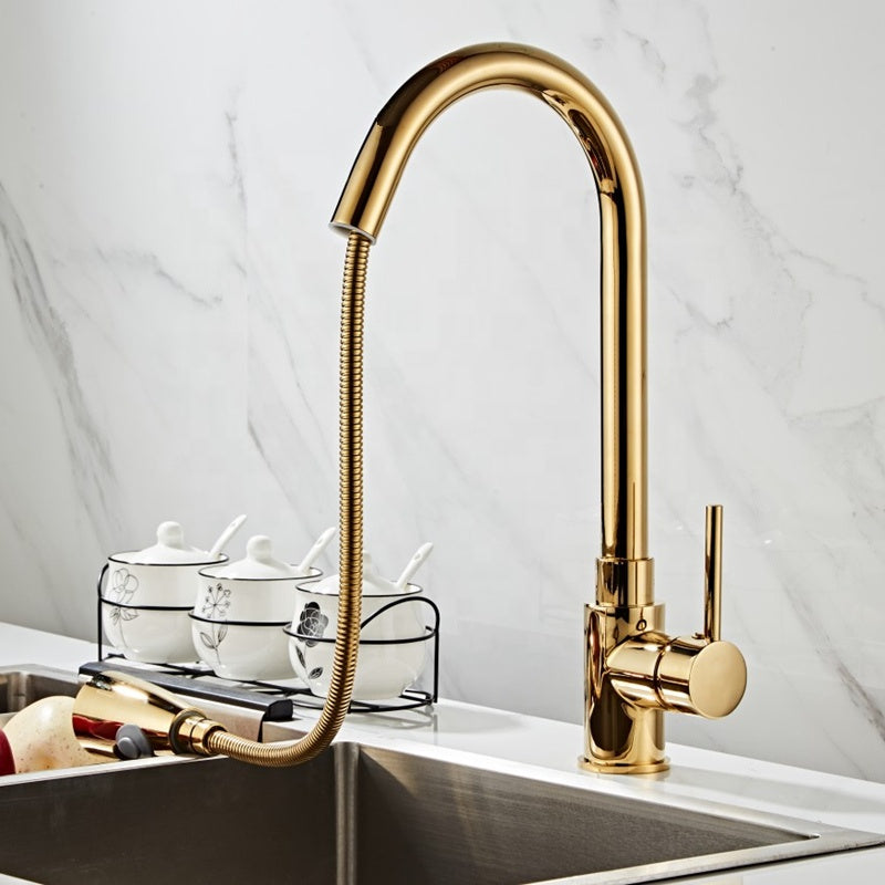 New Design Golden Kitchen Faucets Silver Single Handle Pull-out Kitchen Tap Single Hole Handle Swivel 360 Degree Kitchen Faucet