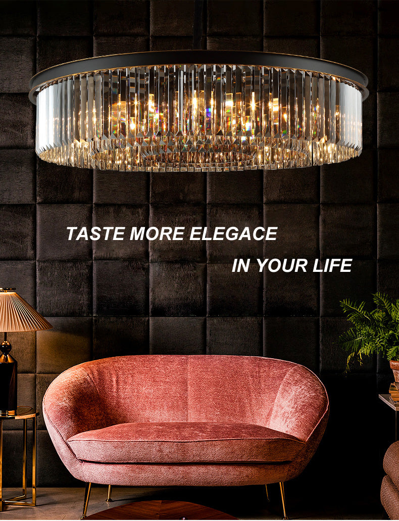 Luxury black semi embedded bedroom living room round Chandelier Ceiling lights