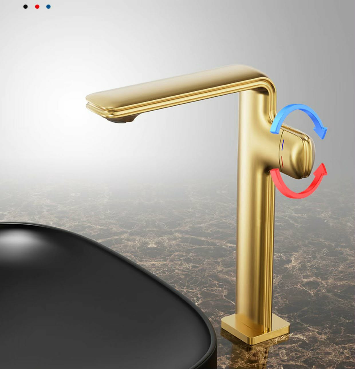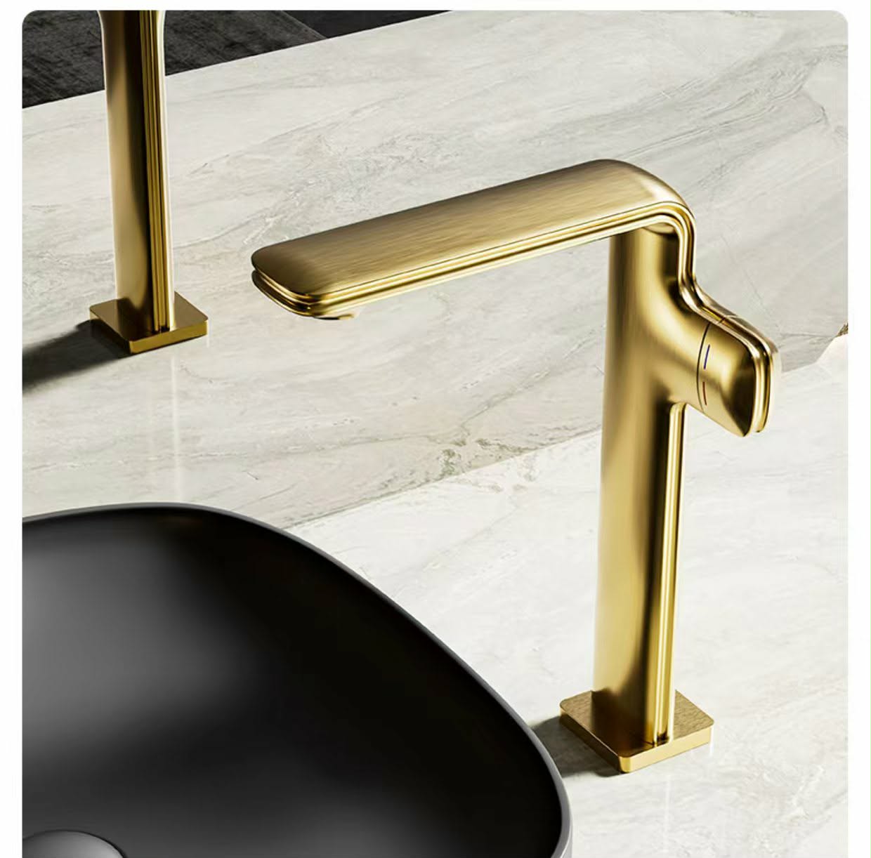 Luxury Brushed Gold Brass Bathroom Faucet – Single Handle Basin Mixer