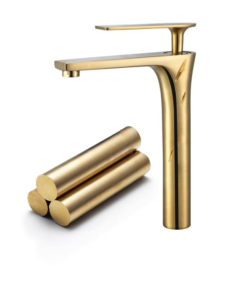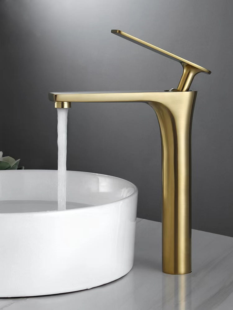 Brushed Gold Tall Brass Bathroom Faucet – Single Lever Modern Basin Mixer Tap