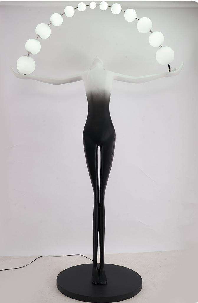 Elevate your interiors with this luxury humanoid art sculpture floor lamp featuring a graceful dance goddess design. Made from high-quality fiberglass, this unique standing lamp combines modern lighting with artistic decoration, perfect for hotel lobbies, luxury living rooms, and stylish interiors."