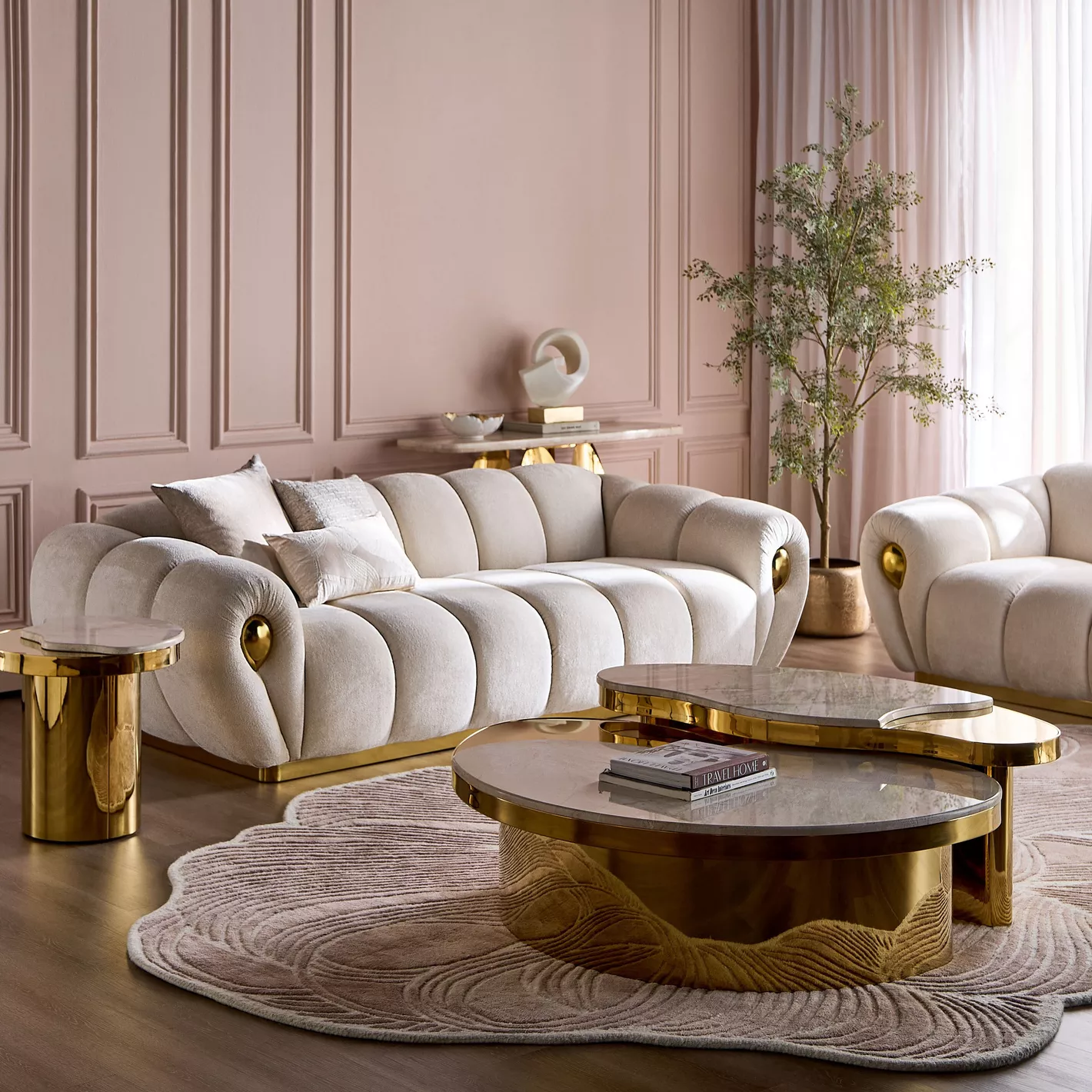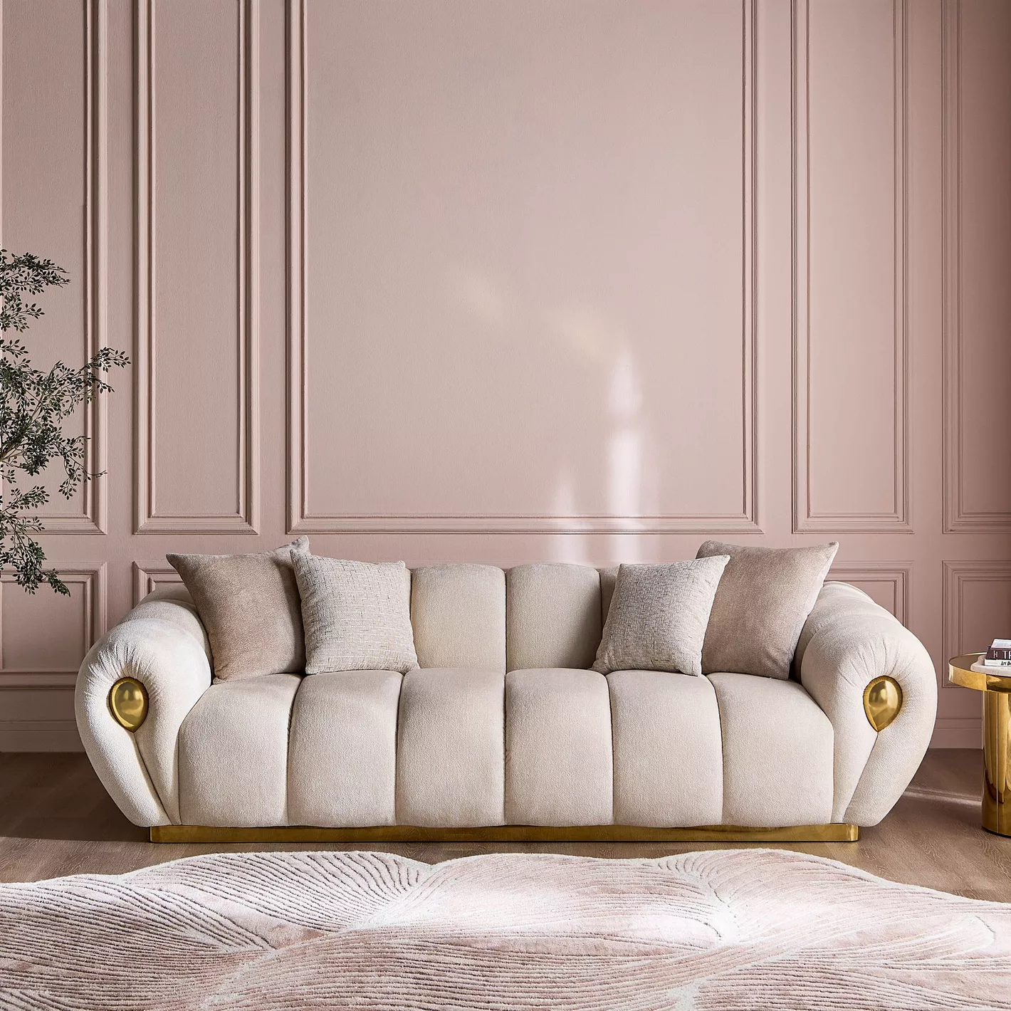 Modern Chesterfield Three Seat Fabric Upholstered Sofa with Tufted Design Sponge-Filled Comfort for Apartment Living Rooms