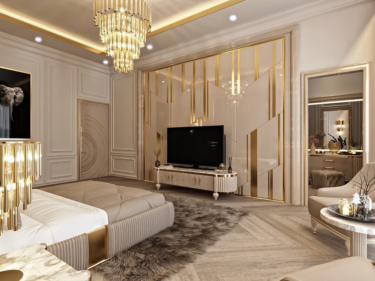 Modern Italian designer hotel bedroom furniture golden luxury bed room set stainless steel king and queen size beds