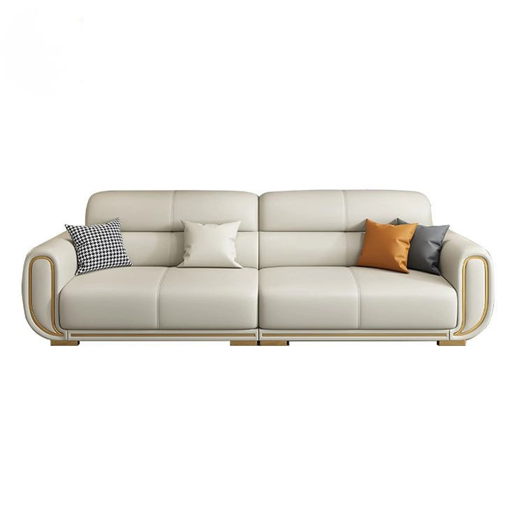 Modern Luxury 3 Seat Leather Sofa Hotel Villa Living Room Wood Frame Beige Leather Upholstered Sofa Furniture