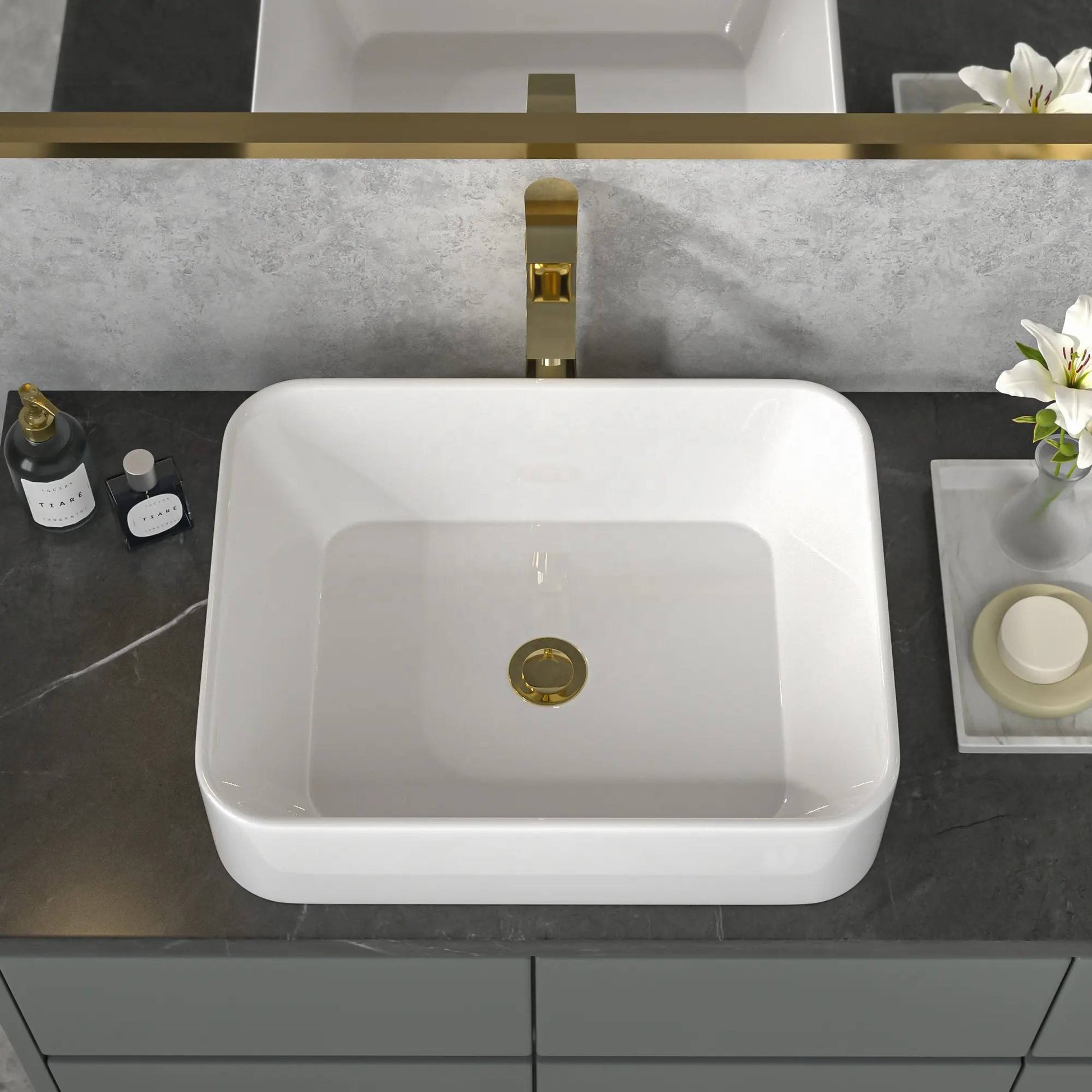 Modern Porcelain Rectangular Mount Washbasin Countertop White Bathroom Vanity Sink Luxury Vessel Wash Basin for Home Hotel Apartment Villa