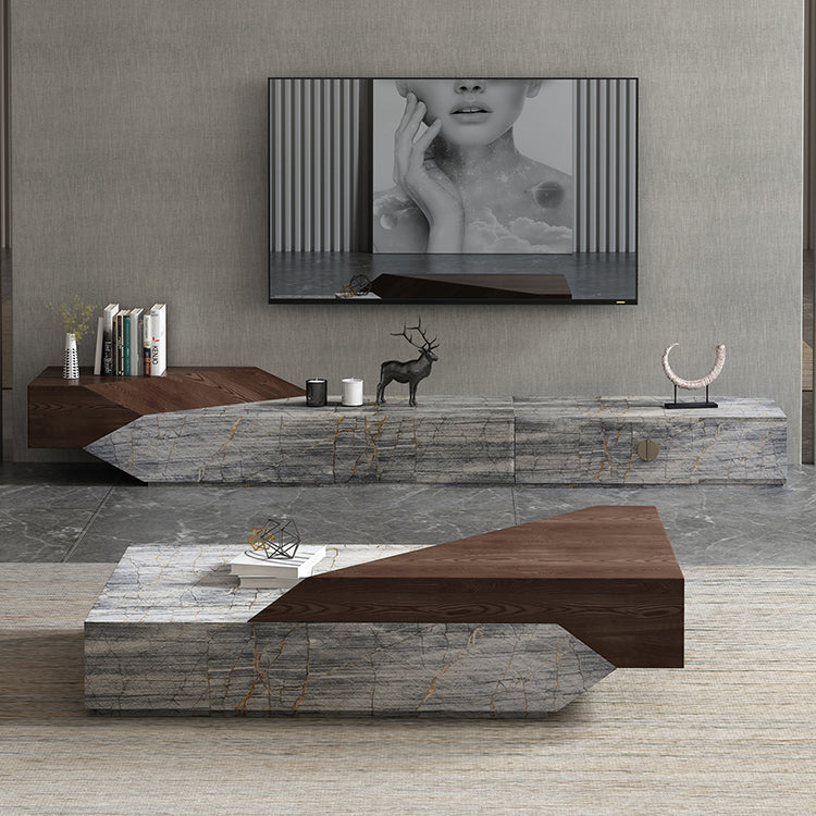 Natural Marble Wood TV Stand Living Room Furniture TV Cabinet Modern