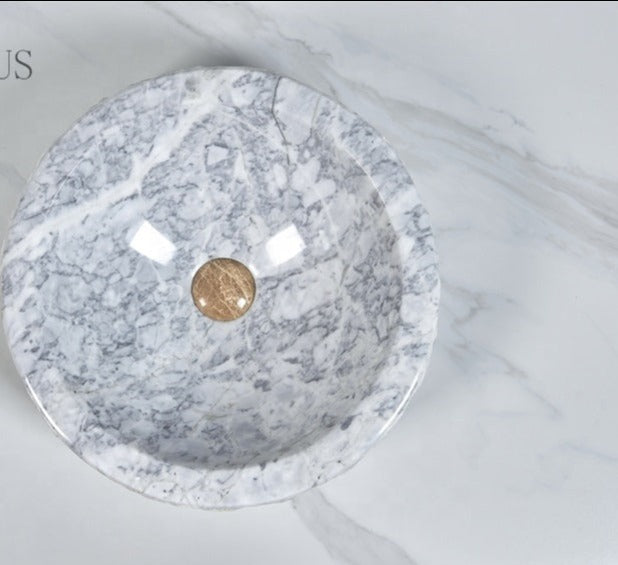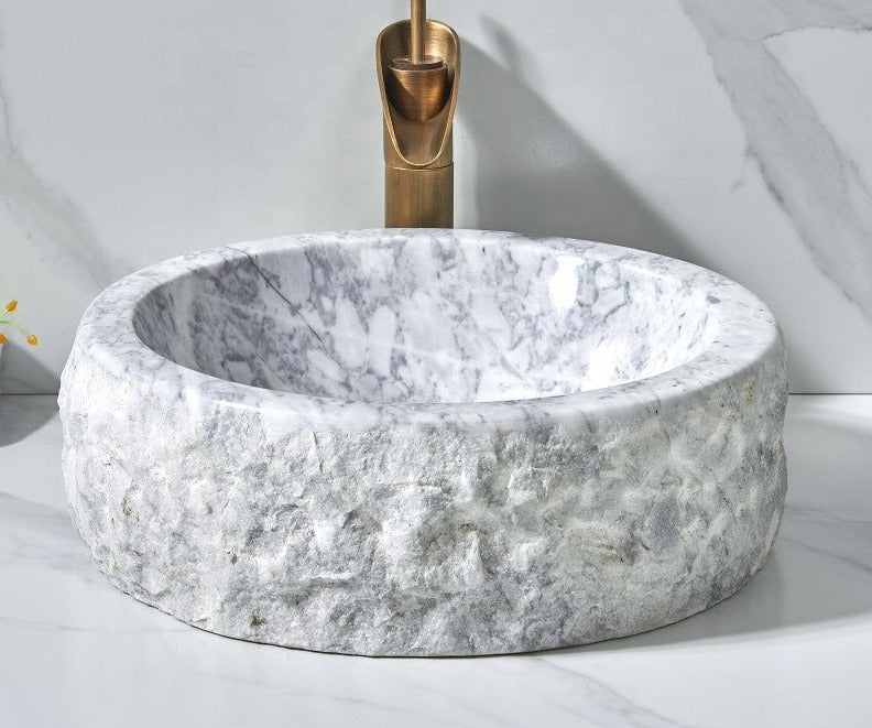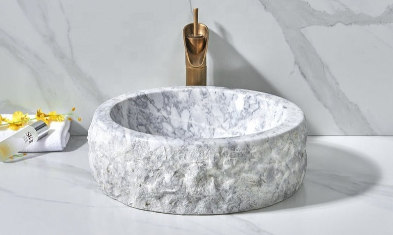 Carrara carved outside marble vessel sink hand crafted marble sink .Above counter top hand wash basin size decorative wash basin... Read more