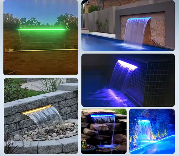 Outdoor Acrylic Water Cascade Fountain for Swimming Pool & Spa – Modern LED Waterfall Feature