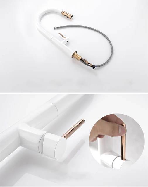 Pull-out Sensor Touch Faucet Hot and Cold Smart Mixed White Gold Automatic Pull-out Kitchen Brass Faucet