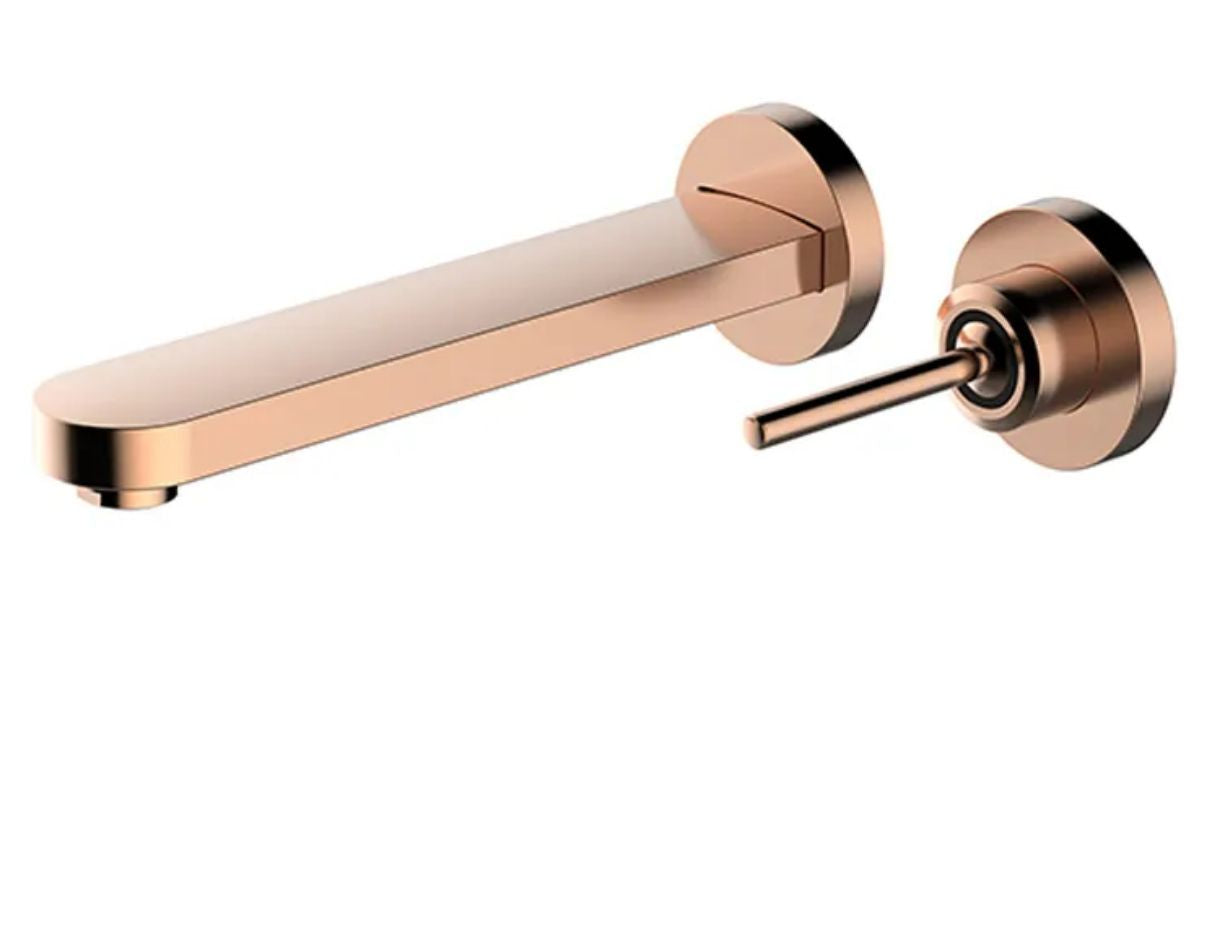 Modern rose gold wall-mounted basin mixer faucet Sleek minimalist design with a streamlined spout Single-handle control for precise water flow... Read more
