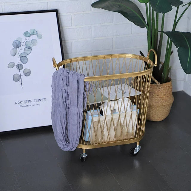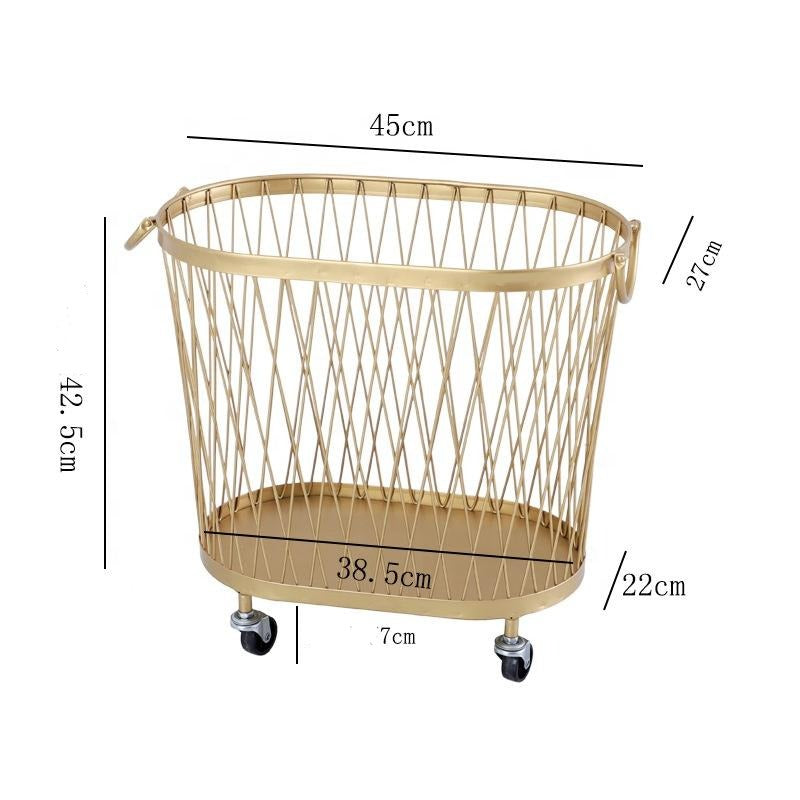 Simple Elegant Laundry Organizer Made of Iron Clothes Basket with wheels
